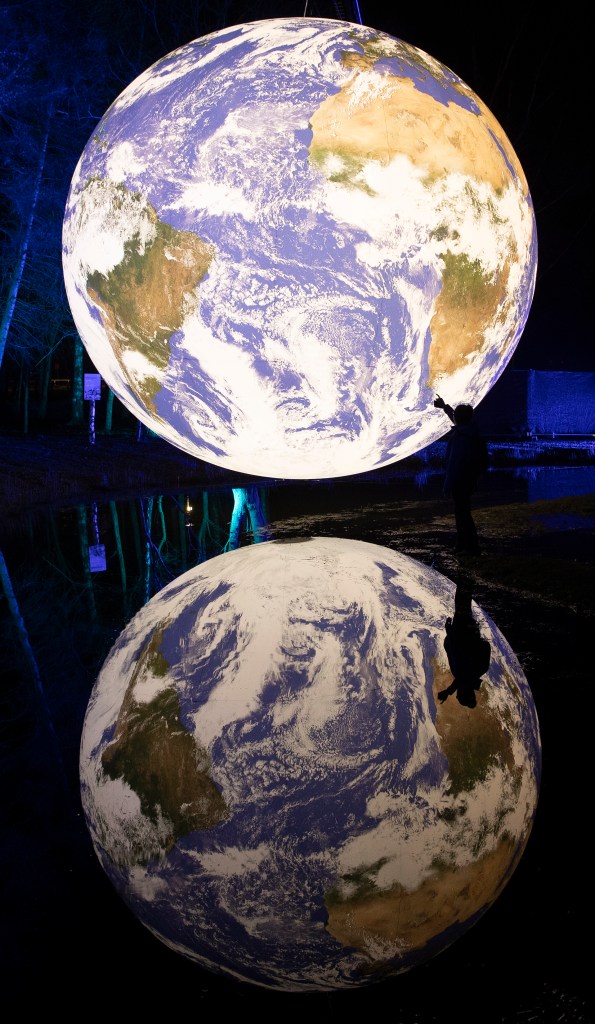 Image: Gaia by Luke Jerram, Fire & light: Cosmic Fortune, The Helix. Picture by Graeme Hart